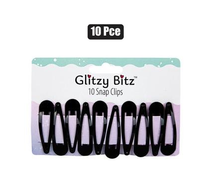 Hair clips 10pc black 5cm snap-on